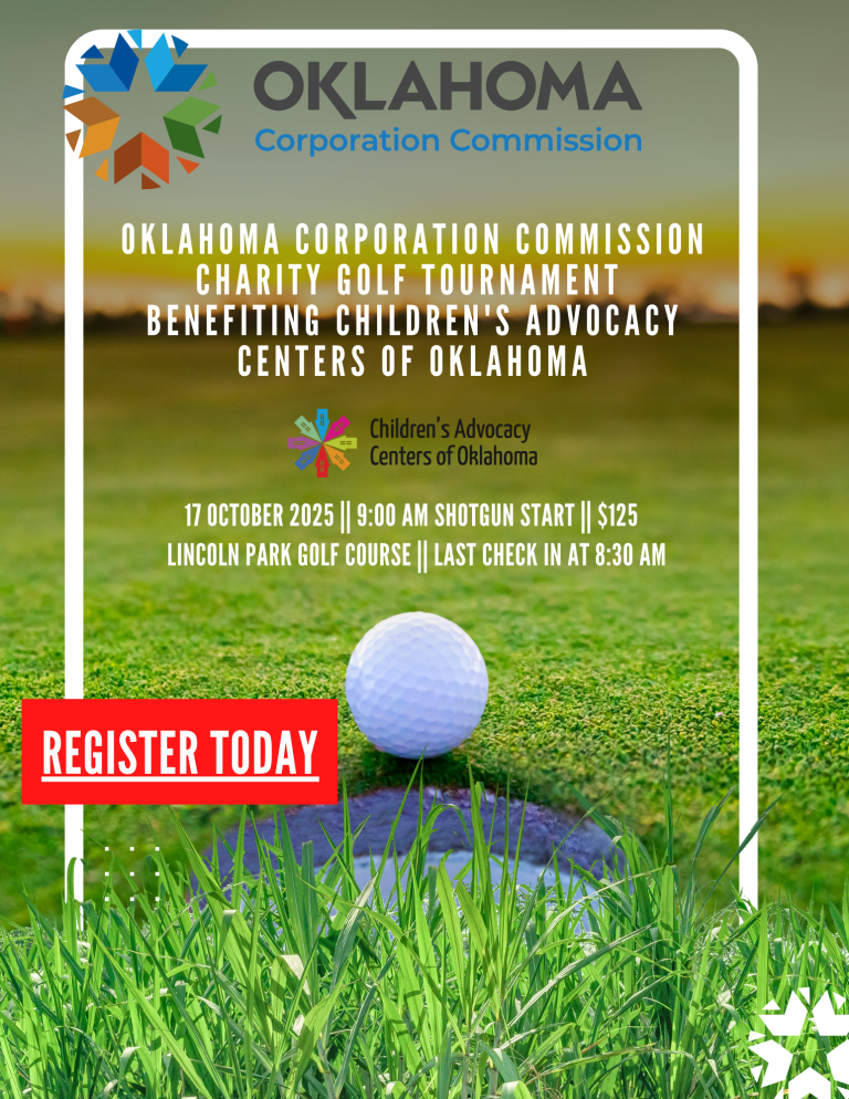 The Oklahoma Corporation Commission is proud to host a Charity Golf Tournament benefiting the Children’s Advocacy Centers of Oklahoma (CACO).